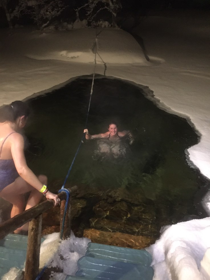 So apparently a “fun” thing to do in Finland is to roast yourself in a smoke sauna, to the point where you’re eyeballs boil… then jump into an ice pool – and by ice pool I literally mean a hole in the ice. The ice pool quite literally takes your breath away and made me squeal like a… I don’t know what, never made that sound before!!