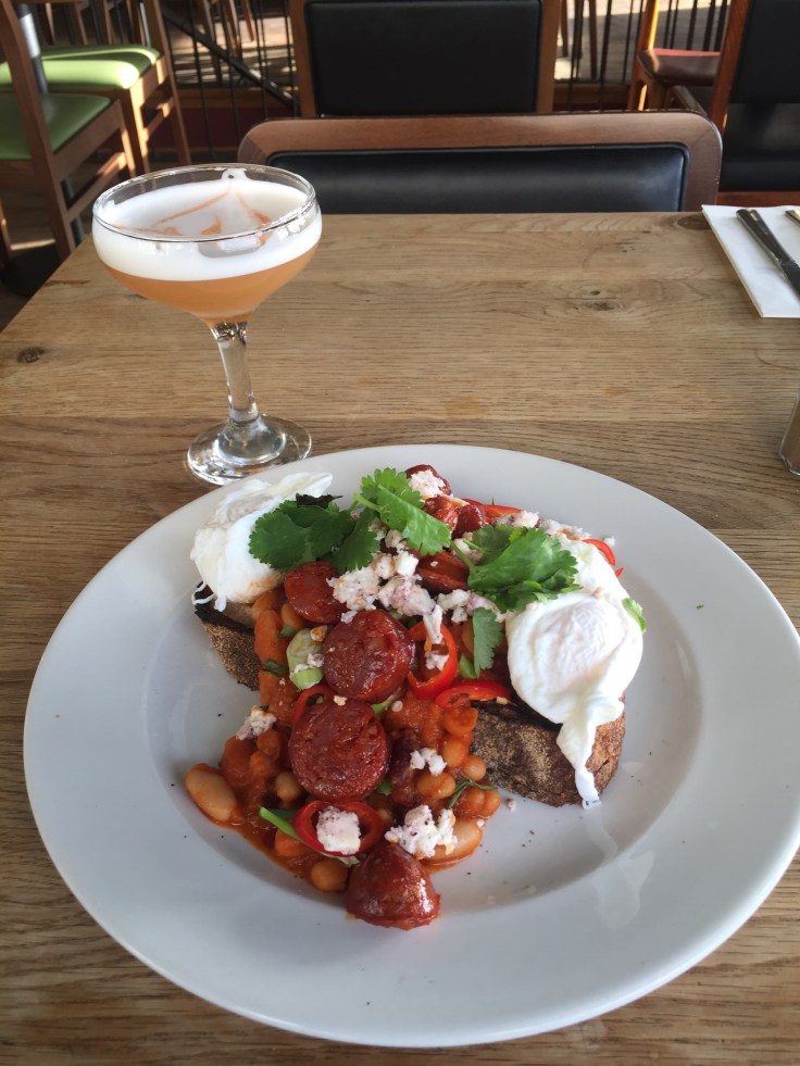 So after 10 minutes of staring at my beloved ocean, I meandered down the esplanade to my breakfast stop. A long train ride so I knew exactly where I was going and the chorizo and egg goodness that awaited me, the breakfast martini was a welcome surprise!! Hello breakfast…