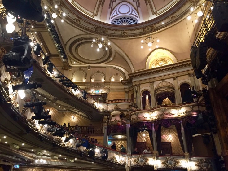 The show was on at the Victoria Palace Theatre, one of the most beautiful and ornate theaters I’ve ever been to. Absolutely stunning, could have sat there for hours just looking at the ceiling and beautiful stalls.