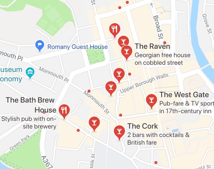 Having already spied the cute pubs on the way through, it was an easy choice to pub crawl our way through Bath. It is after all only 50 meters between each pub and a convenient half circle of pubs surrounding our accommodation.