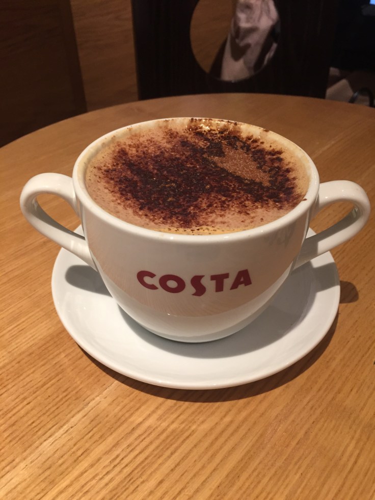 I tried to feign interest in the museums and listen to the audio guide but after 30 seconds I was done. Instead I found a warm room and thawed, planning my next move… Right, Uber to the Emirates Sky Line cable car thingo, scenic ride across the river then a couple of tubes to Camden for birthday dinner. You know what they say about best laid plans! Down the hill to the road and my super awesome phone no longer has an internet connection for Uber. If I’d backed up my phone again since leaving I would have been very tempted to just throw the piece of crap in the river. Instead, I found a Costa Coffee with free WiFi and in my freezing coldness ordered a large mocha. Got this – bigger than the spaghetti bowls I have at home, and tasted like a cross between cheap chocolate and mud.