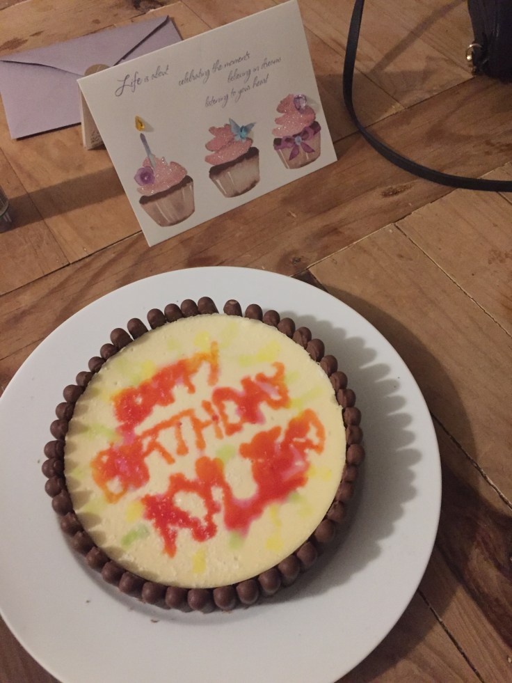 But first, boring life maintenance like washing and fun life maintenance like popping to Sainsbury’s for a birthday cake. My idea was to buy a cake and decorate it beautifully so we could celebrate tonight when we get home from dinner. Probs should have been better at adulting and found an actual bakery and bought a beautiful cake befitting of the birthday girl. Instead it was a packet cheesecake, biscuit fingers and some crappy icing writing pens. It’s the effort that counts right? Anyways, heading off to Greenwich about midday, onto a bus to Brixton Station then 10 tubes, most in the wrong direction so it took me about double the time to get there. Maybe I still need more sleep.