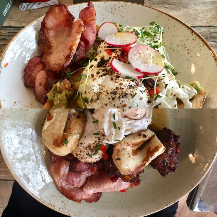 Speaking of food, to go with the concoction of vitamins and who knows what else the pharmacist gave me, a healthy hearty brekkie was in order. I tried to order something with spinach and all those healthy things but the stars aligned and they were out… so it was back to the good ol’ bacon, eggs and smashed avo… although major food envy when Kylie’s corn fritters and halloumi amazingness arrived!