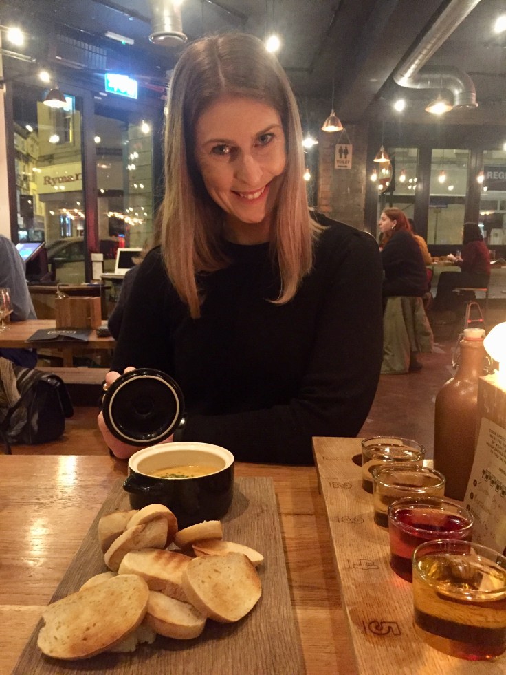 And oh my yum, a tasting thingo of cider, cheese fondue and a beef brisket pizza. At the time of ordering we hadn’t figured it was a pizza, just saw beef brisket and jumped in head first, as you do, but the pizza bit was a nice surprise, cos let’s be honest, carbs are delicious!!