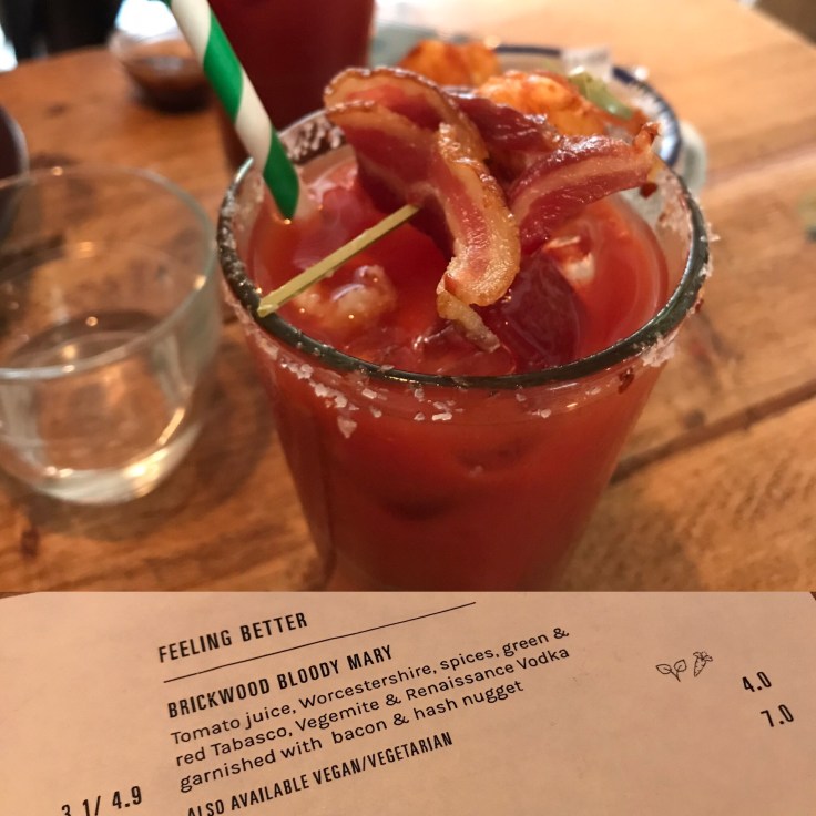 So Friday, a distant hazy memory of not so quite awakedness… there was bacon, at a really cool place in Clapham. Hmmm, what else?? Bacon always tends to take the starring role. Oh that’s right, there was an epic Bloody Mary with vegemite and bacon in it!! The Geordie was there too dealing with my jet lagged sparkling personality.