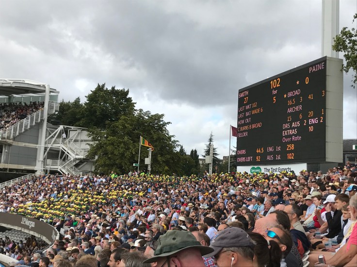 Onto the main event. The Ashes. Six months in the making, a random ticket draw later and Kyles and I… failed to get tickets… luckily for us and not so lucky for Adam Tanshevcholovamolotov who couldn’t make it so we got one spare, then bless Pete, he couldn’t make it either so Kyles and I were in!! One of us was excited beyond belief to be going to the most iconic cricket stadium in the world to see a legendary battle fought throughout the ages, the other just hoped there was gin. Tough decision which one I was!!!