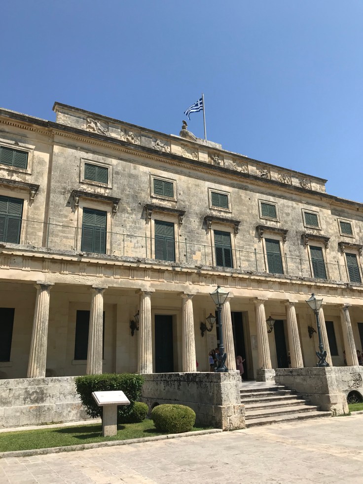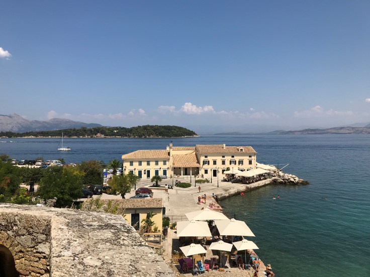 How to describe Friday… sunshine, beautiful city, delicious food, great company… or I could be honest… hangover, 36 degree heat, sweat, grumpy Holly and three people hardly talking because we overslept and missed the ferry to Albania. I should have been more empathetic to Kyles, going to Albania was the main reason we made the trip to Corfu, she was beyond disappointed. Unfortunately I was a shit friend that instead stuffed my face full of pancakes and bacon and could hardly string a sentence together on account of the banging in my head. NEVER DRINKING WINE AGAIN!!! There was a reason I switched to gin. The bacon kinda helped, as it always does. So did eating half of Kylie’s…