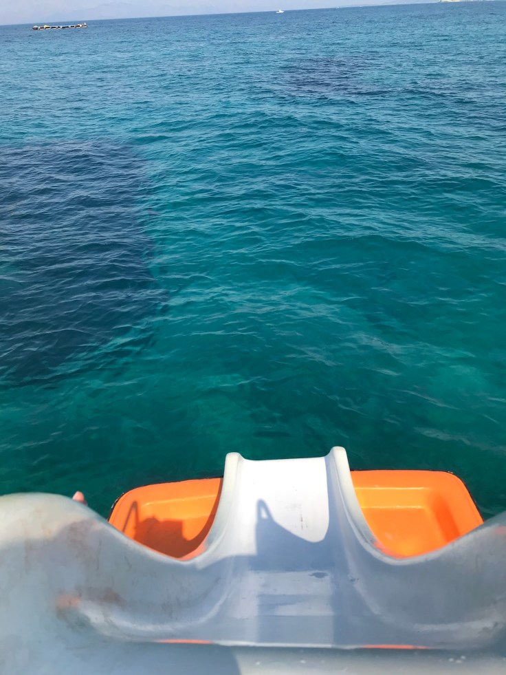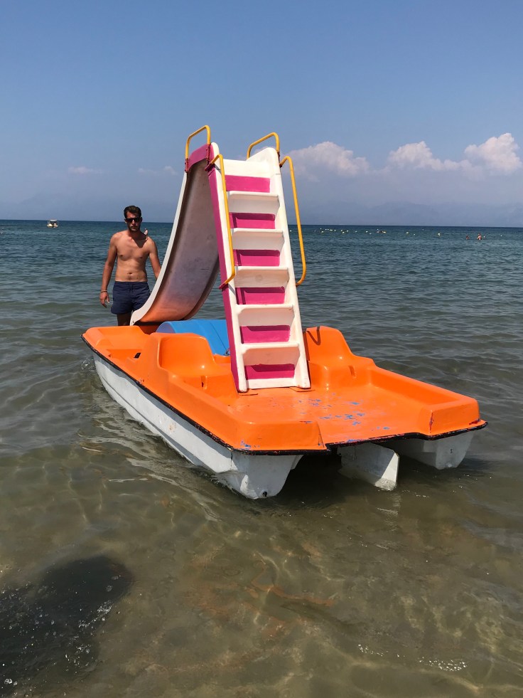 On a high from well, literally being high, we sunbaked for 0.5 seconds and then were off again, cocktails in hand and onto this masterpiece of fun!!! A paddle boat WITH a slippery dip, I never knew such magnificence existed!!! The dude wasn’t bad either…