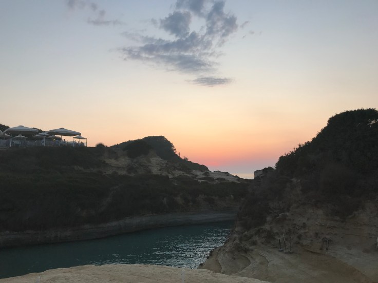 Arriving in Sidari, it looked like old school Greece. Pink houses, olive trees, hills and concrete gardens. Wogs love their concrete. Being a sheep and following my Shepard’s to the accommodation, I have to admit I was dubious, as much as a thumping headache would allow anyway. The slightly unkept road was sparse, with a few massive double story Greek houses with pools. Apparently that’s how they roll in Sidari. Rocking up at Maria’s, the Geordie’s name was written on a piece of paper and stuck to an open apartment door, guess that one’s ours??? I think there was some sort of check in process, wouldn’t know, I found a bed and an air conditioner and was out for the count. I woke at 8pm to the snores of a Geordie, Kyles on the other hand hadn’t wasted the day, she’d found the beaches, town centre and watched the sunset, found the beach bars and indulged in a cocktail or two. Grumpy Holly turned into disappointed Holly for wasting the short time we had in Greece. But we got our shit together and Kyles took us to an epic beach bar over looking the ocean, suave tunes and a Greek waiter that was confused about it currently being winter in Australia. A gin cocktail and Gyros later and happy Holly had returned, tail between her legs for being a grumpy hangover arse. On our journey back to Maria’s, the sound of the Zorba drew us into a local where a Greek god was dancing, needless to say we convinced the Geordie to stay and watch… yeah, dude from 50 Shades of Grey but hotter and with a Greek accent… no words…
