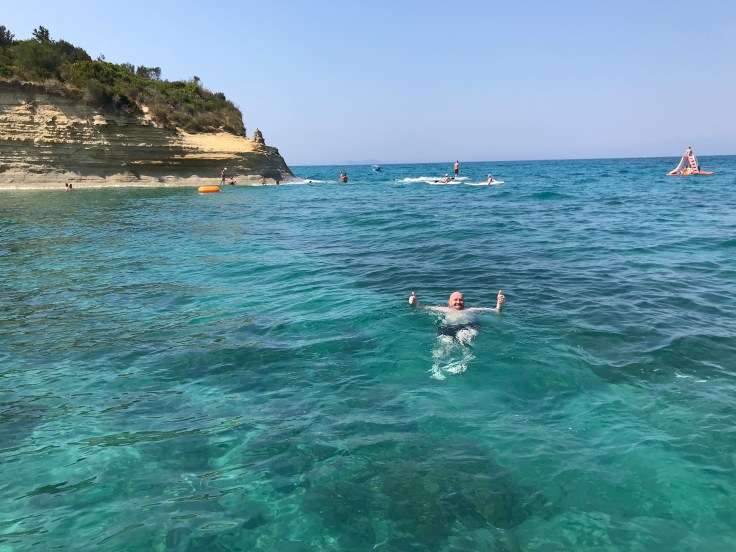 With Kyles disappointed, the Geordie thirsty and me, well, being a grumpy pain in the arse if I’m honest, we decided the best bet was to jump on the bus to Sidari, drop our stuff in the room then wash off the hangover in the sparkling ocean. For a day where nothing went to plan, of course Google maps doesn’t like Corfu and the ten minute walk to the bus station turned into an hour trek through Corfu’s cobbled hilly streets in 36 degree heat dragging a suitcase. I tried to put on a brave face, as soon as we hit the bus station I shoved ice cream and cold coke into my dehydrated hungover body then face planted on the table for a nap, leaving Kyles to ponder for the next two hours whether she still wanted to be my friend. The Geordie found a different bus stop, the one with a pub of course!! So apparently the bus ride to Sidari is gorgeous, wouldn’t know, said face planting on the bus station table transitioned to face planting on the bus window. I’d stay stop rolling your eyes Mum but have a feeling there is plenty more of that to come…