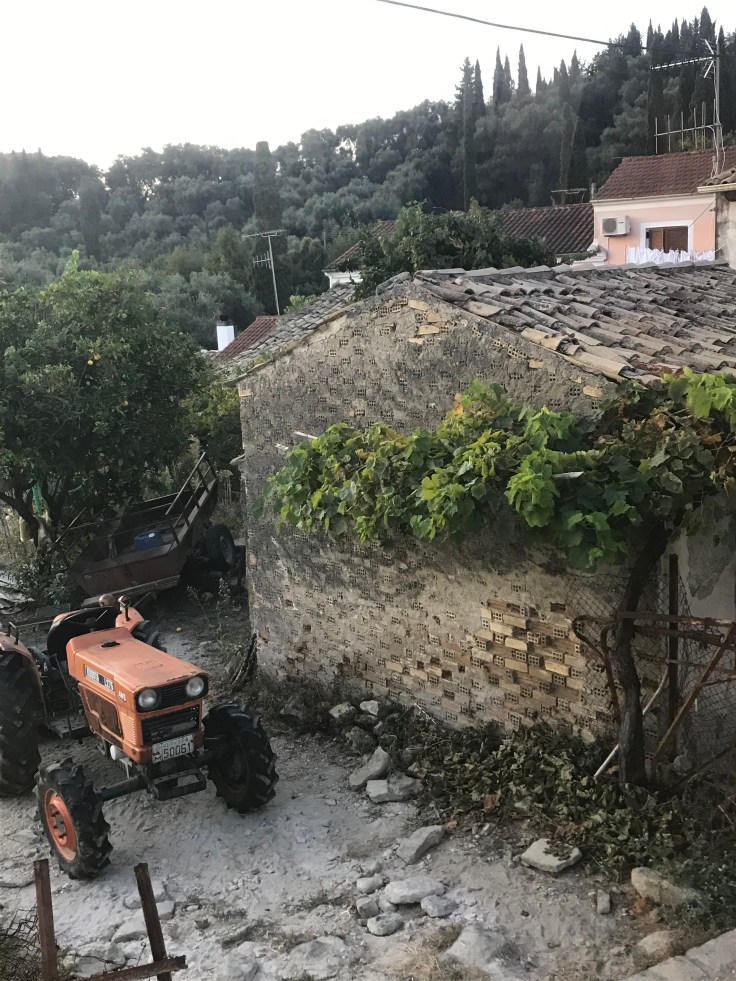 Somehow even with 5 times the amount of sleep than the other two, I woke Sunday feel like crapola, maybe just knowing our holiday in Sidari was over, no wait… I’m permanently on holiday, no reason for feeling like crap, go back to that old age excuse?? Anyways, we got our shit together and onto the 7am bus back to Corfu, this time I kept my eyes open as the bus wound through too tiny streets and across an absolutely beautiful countryside that seemed to epitomise Greek countryside once again, pink houses, tractors, trees, rolling hills, and men sitting in their shorts drinking coffee outside cafes. Can’t believe I was a mattress head and missed it the first time!