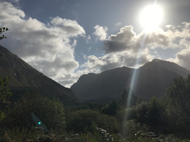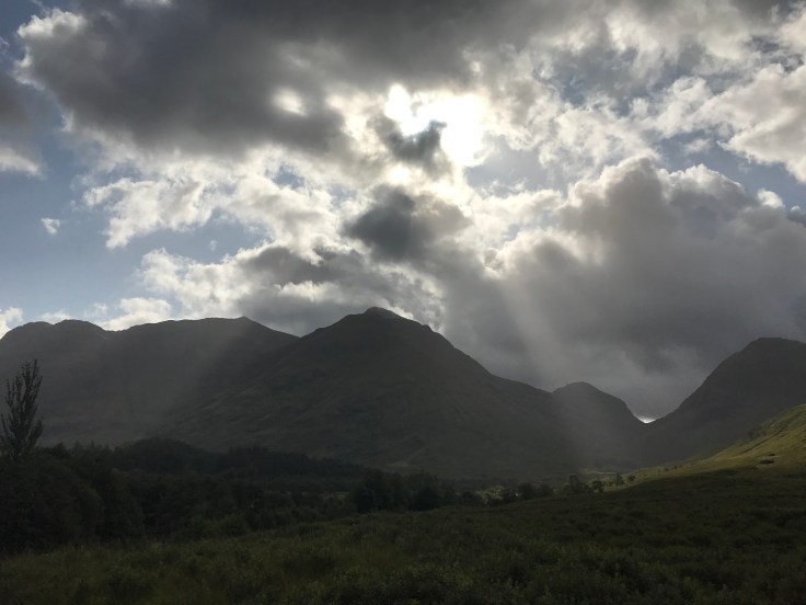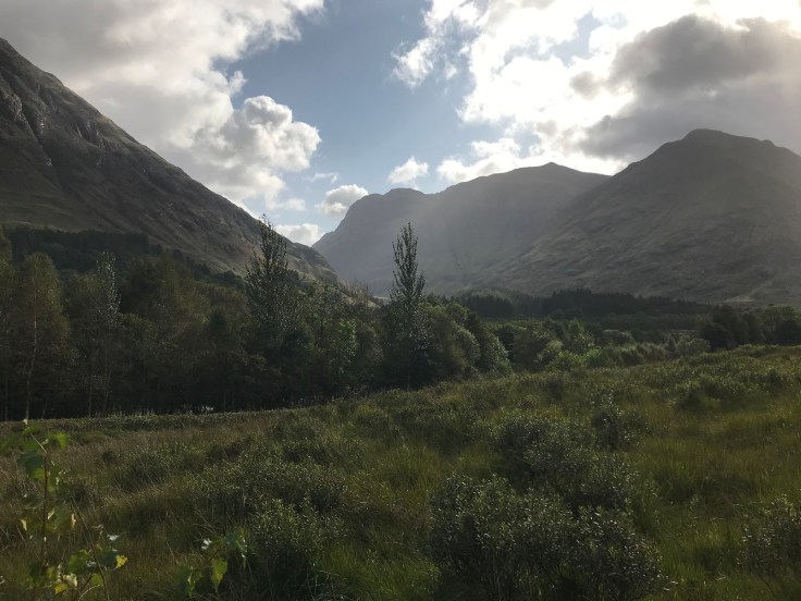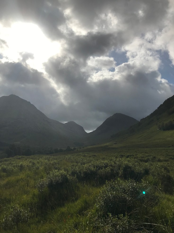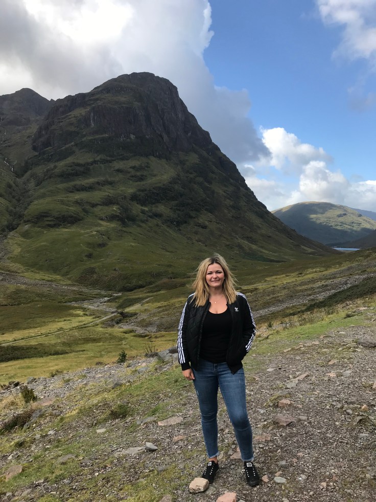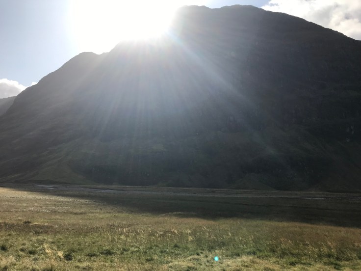 The trip to Glencoe was some of the most beautiful scenery I’ve ever seen in my life. As Glen means valley, the scenery was valleys and mountains on the left and a loch on the right… always a loch, I don’t think there was more than 5 minutes of travel in which there wasn’t a loch in view. I really just wanted to hike in the mountains and swim in the lochs, but unfortunately I was in-prisoned on the bus. Maybe Dan the prison Man won’t notice if I don’t get back on the bus…. and anyways, Glencoe is the home of Skyfall where James Bond lives so I could always go hang there… Upon arriving at Glencoe, rather than join the others in the visitor center, I decided to hike up the hill to the viewpoint, joined by Robert, the dude from the bus who sat opposite me, also traveling solo, really friendly and up for a chat. The view of Glencoe was magnificent, magical, all those WOW words. The sun shone in streams down the mountains and valleys, I could hardly believe just how stunning it was. Pictures don’t do it justice, not even close. This is the Scotland I love. Build me a little house on a hill overlooking Glencoe and I’d be happy for life. Throw in my very own Jamie Fraser and I’d never have reason to leave!!