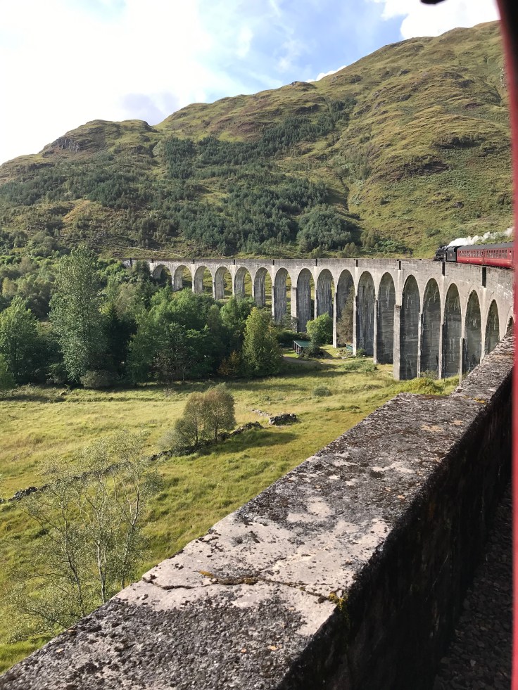 My disappointment from the fort was replaced with major excitement when the group reconvened at the train station and it was all aboard the Jacobite train… wait, isn’t that a song?? Not really sure why it’s called the Jacobite train, if I wasn’t 40,000 feet in the air while writing this I’d Google but even Google cant reach here, well at least not on Ryanair… I digress… my excitement for the train was because it went over the bridge from Harry Potter!! You know the one in the second movie with the flying car and Ron and Harry are trying to catch up with the Hogwarts train?? Yeah nah??? Check out the pics and vid below and you’ll know what I mean. Actually called a Viaduct for reals, would Google the actual name but can’t, seems I don’t function without Google…