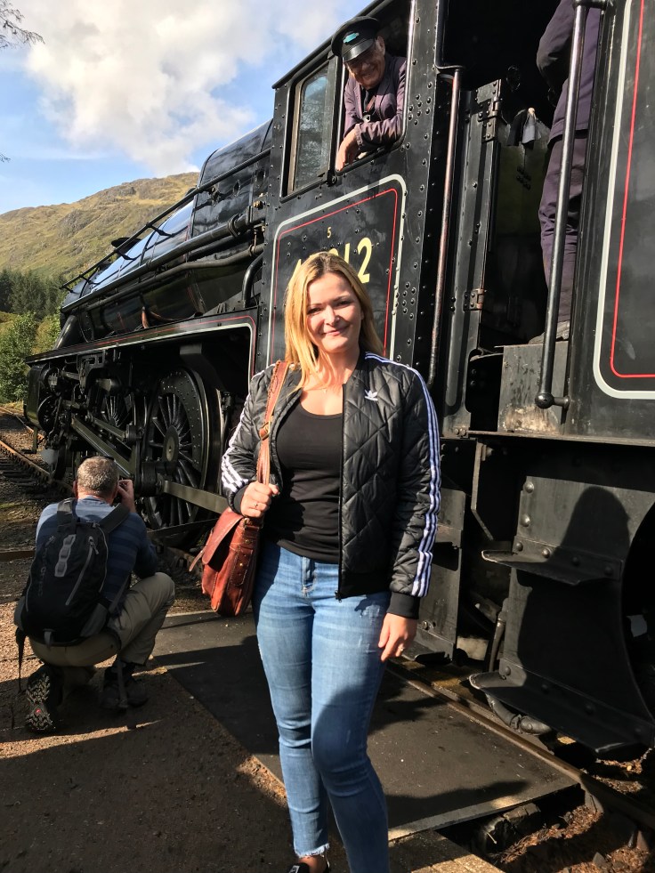 In between getting carpel tunnel from snapping a million pics, on the train I was lucky enough to sit next to Robert and chat with a fun American couple Christi and Todd. Now it was on this trip that I learnt Robert was one of the coolest dudes I’d ever met, too bad about the 20 year age gap! Mr Craig (Robert not Daniel) had seen live in concert Queen, The Rolling Stones and The Who, all for under £10, AND had a ticket to Live Aid. If you know your music history or have seen the Bohemian Rhapsody movie, you’ll know that Live Aid was one of the most epic concerts of all time. Unfortunately Robert broke his leg a few days earlier so didn’t go and regrets it to this day. Don’t blame him, I would too!! He also saw INXS live, dude is a bit of a legend. The train ride itself was bloody brilliant as Ron would say, steam train through the beautiful Scottish countryside, great company and a bar cart serving gin. When Robert was the only other to order a beverage I knew we’d be BFFs for this trip!!! Disembarking at the train station, it’s was pics galore with the beautiful piece of machinery, and with some encouragement from Robert, I used my Aussie charm on the conductor so I could to climb inside the train engine area, no idea what it’s called…