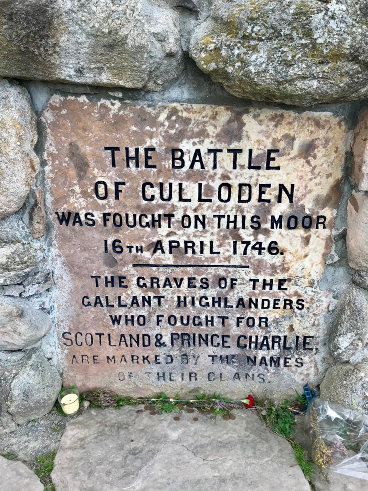 The three part tale leading up to our arrival at Culloden started with the background of Bonnie Prince Charlie of the Stewart’s who had a birth right to both the Scottish and British thrones. His dad had been booted as King and exiled to France when he was 6 months old, he then grew up in Rome. Kinda sounded like he was bought up with an inflated ego and air of entitlement, sure he was the rightful King but maybe a spoilt brat too?? Anyhow, after many attempts to sway the French army to invade England, cos we all know how the French felt about the English back in the day, things just kept going sideways so he went at it alone, trusting the French would invade at a later date to support him. He set off for Scotland with a massive fleet of two ships… the one with all the soldiers and ammowas intercepted by the British, badly damaged and returned back to France. The Bonnie Prince on the small ship snuck into Scotland and so began the Jacobite rising of 1745 aptly named “The ‘45”… and the end of part one of the story. Obvs when told with a Scottish accent and time to burn its way more interesting. Nice work Dan the hungover Man, I could hardly string together a g’day mate… but apparently according to Daniel the more whiskey you drink the straighter the roads get??