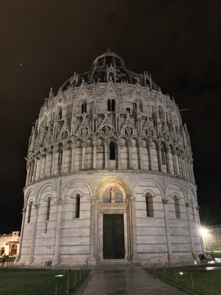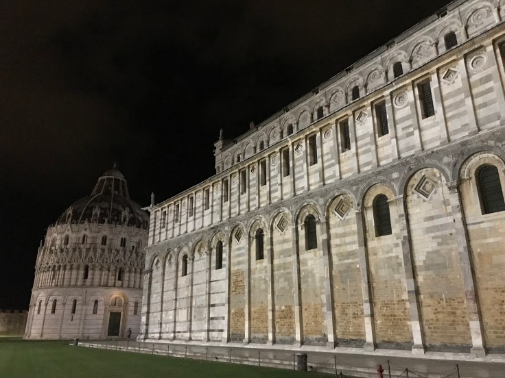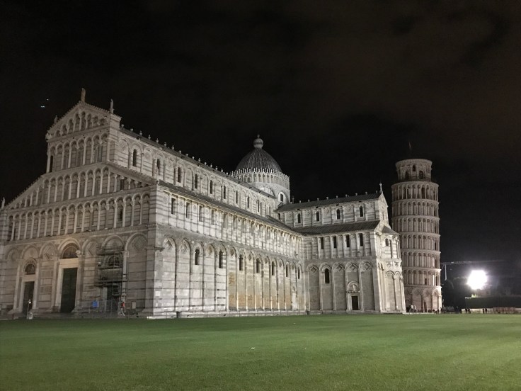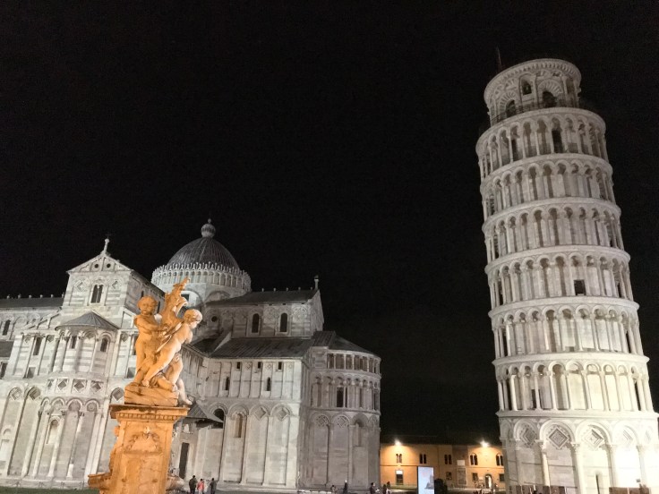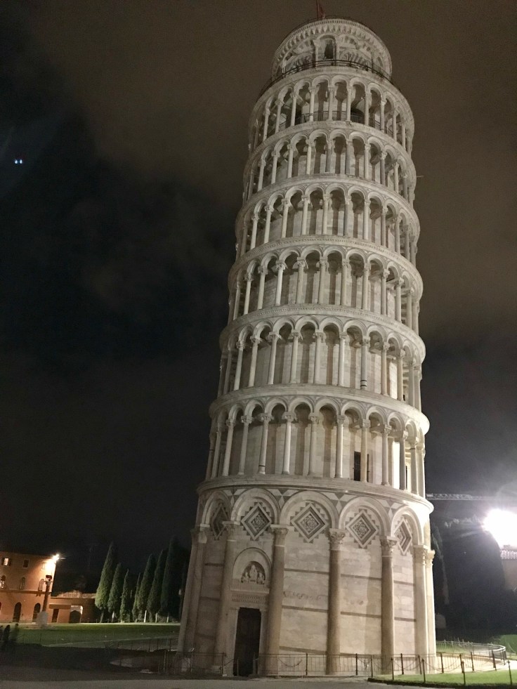Walking to my Air BNB in Pisa, I got away with my life, crazy Italian drivers and an Aussie tourist that looks the wrong way when crossing the road, oops. Really am a dodgy tourist. Did something of a drop and run with bags at the Air BNB where my host happened to be Scottish, my priority was to get my tourist on and check out Pisa’s biggest celebrity, the leaning tower. Only a 25 minute walk away for most people, 40 minutes for a dodgy tourist that gets lost. It’s such an awe inspiring site when you’re getting into the area and get a glimpse of it towering over the other buildings, even more WOW when you turn the corner and there it is. The white marble all lit up against the black night sky is pretty damn impressive, check it out for yourself…