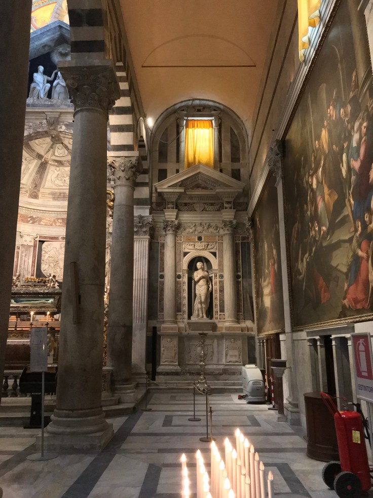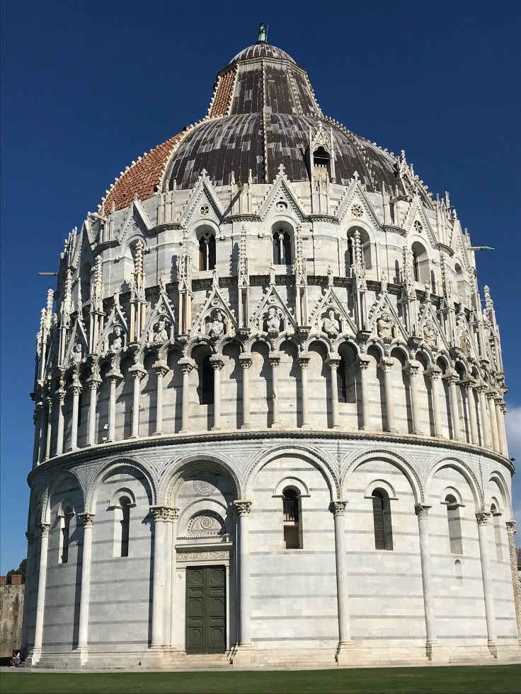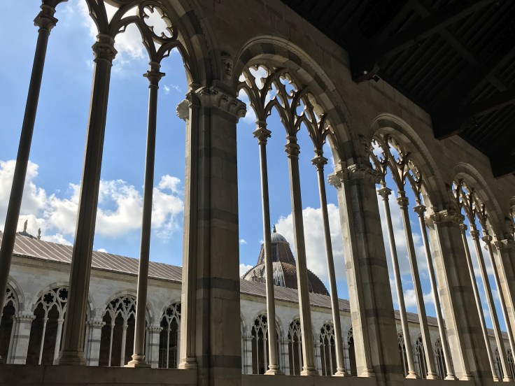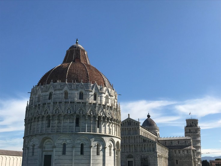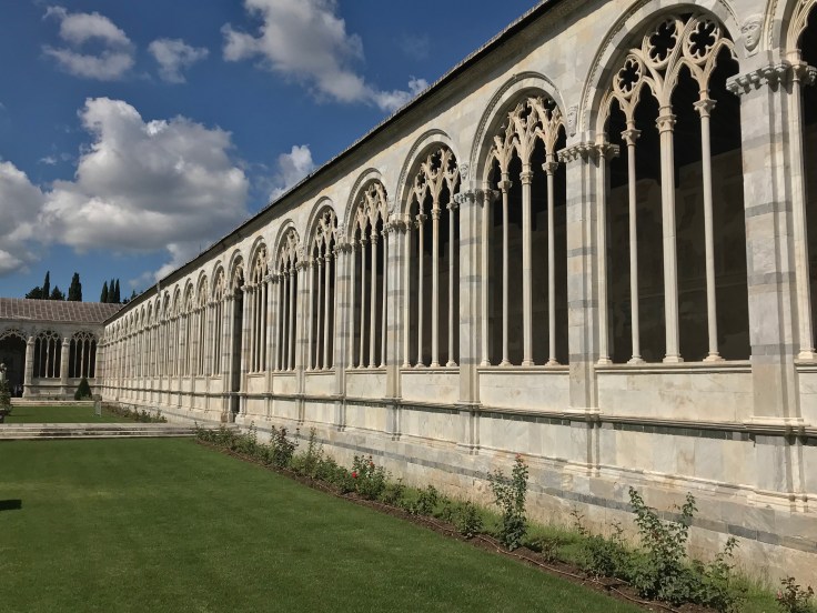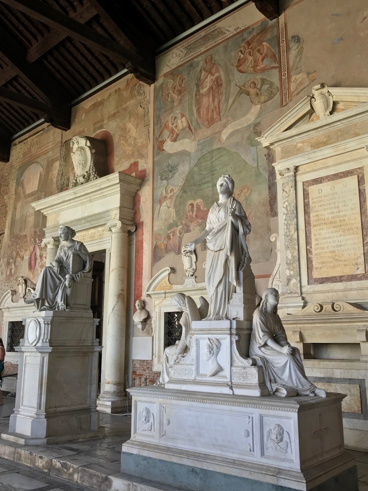 With a 2.30pm train to Florence, I was up and at it the next day to take in all the sites of Pisa in the few short hours I had. Just wish the weather forecast was more accurate, had packed for a week of low 20’s and rain but Pisa had turned on the sunshine!! Not complaining, the beautiful blue skies showed off the stunning sites, thanks Pisa! In the daylight, the Square of Miracles was even more beautiful if that’s possible, getting inside all the buildings was a bonus, my favourite being the Camposanto, yep that’s a Graveyard, the arches and tombs were a contrast of beauty and being totally morbid, but we all know that’s how I roll…