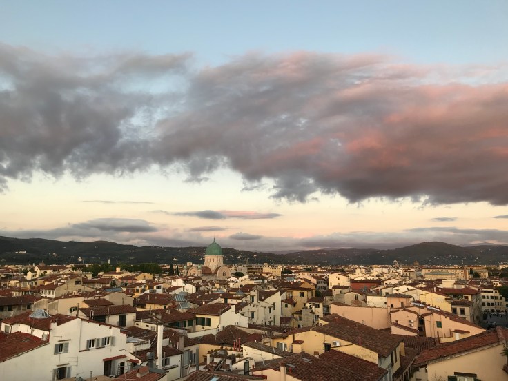 At the next Air BNB, the host Piero was the opposite to the Scottish grump, he was friendly, talked loudly and waved his hands around like a true Italian! And most importantly, he gave me all the best recommendations for pizza, gelato, coffee and dinner, as well as directions to the supermarket. I think he may have noticed I liked food just by the look of me, must get back to the gym… I loved how passionate he was about Florence but before delving into all the pizza and gelato there was rooftop yoga to be had. Using Air BNB Experience for the first time I had booked in for yoga on a rooftop terrace and a home cooked dinner. Half expected it to be a bit dodgy but when I got to the place, after going up the smallest lift imaginable I stepped out onto the terrace and knew I’d hit the jackpot. Possibly the best 360 view of Florence… winning!!!