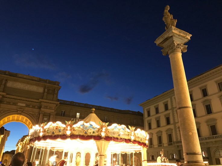 My one regret, I didn’t go into the Duomo. The line was epic and I was tired. Lame excuse I know. Also have the spoilt brat excuse that I knew it wouldn’t be the last time I’d be in Florence. I’m not one to go back to places I’ve already been, there’s so much of the world to see, but when it comes to Florence and Edinburgh, I’ll keep going back as long as I live. Heading back to my Air BNB, I couldn’t help but keep wandering across the most beautiful places, Piazza della Republica with a gorgeous carousel, a stunning old church, across the canal for more gorgeous views and ooops, found myself at the best gelato place according to Piero, how’d that happen??