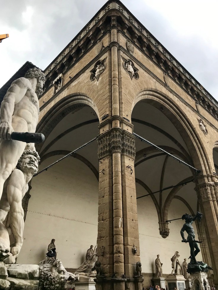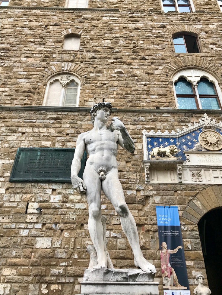 After being stuffed full of the yummiest and biggest panini known to man, I was off to get my tourist on. Piazza della Signoria here I come, a big beautiful square full of old buildings and naked men. They were of the stone variety but damn, everywhere I looked there was tackle, did make me laugh which was much needed!