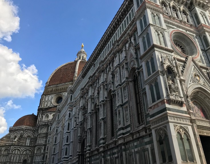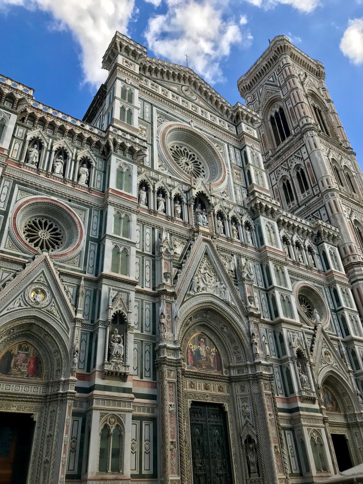 Although my heart was well and truly in Florence my mind was venturing to next week’s adventure in Morocco. Having been booked since our time in Ireland, I knew it was happening but for some reason, had not thought for a second that maybe, just maybe, I’d need to do some kind of preparation. Hopeless Holly just thought she’d pack and go like every other trip but over that epic, gorgeous, delicious, mouth watering steak, Adam, who was also Morocco bound, mentioned that women MUST cover up in Morocco, despite the 35+ degree heat. Bananas. While sure I’d bought some winter clothes with me, most of my gear would not be considered conservative. Let’s be honest, I have tits and arse, they are hard to cover up at the best of times. So the next few hours were spent hitting up H&M and alike discount stores, not how I’d choose to spend time in Florence. Wow, I just whinged about shopping… what a spoilt spoilt life I lead! Truth be told, I don’t like shopping. Shoes yes, gifts yes, clothes NO. Anyhoo, I got bored pretty damn quick and decided that the Duomo was way more important than an imminent trip to Morocco. If you were to see the Duomo, the Florence Cathedral to us Aussies, then you’d agree. One of THE most intricate and stunning buildings I’ve ever seen in my life. I’d been so used to seeing white or grey old buildings, which I love, no complaints here but the Duomo has green and a burnt orange colours integrated into the arhictecture as well as artworks above the doors, I dare you to name a more beautiful building in the world, go on, where???