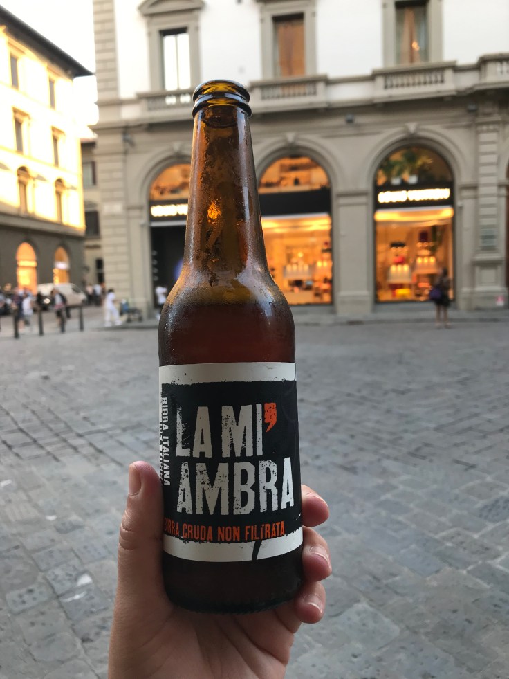 A baci and coconut gelato later, I did the most Italian thing I could, besides eat my weight in gelato and pizza… I had a siesta, how many people are hating me now???? Not even joking that I really am living my best life!!! But the tourist in me called, told me I was wasting time so I was back up and at it for my second Air BNB experience, a “Walk through the dark side” tour of Florence. Of course, after a nap I was tired and needed sustenance so found some random Florentine yummy and indulged… One of life’s first world pleasures is biting into something and finding the surprise of a gooey chocolatey filling… Of course people in third world countries just appreciate a glass of clean drinking water as a pleasure but I’m a spoilt Aussie brat so taking pleasure in this yumminess… and the Italian beer that accompanied it…