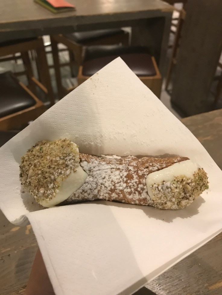 Having had my fill (for today) of pasta and wine, I wandered back to my Air BNB but got distracted by markets, yep, a whole food hall open til midnight. Of course, it wouldn’t be date night without dessert, a cannoli in Italy, how could I not??