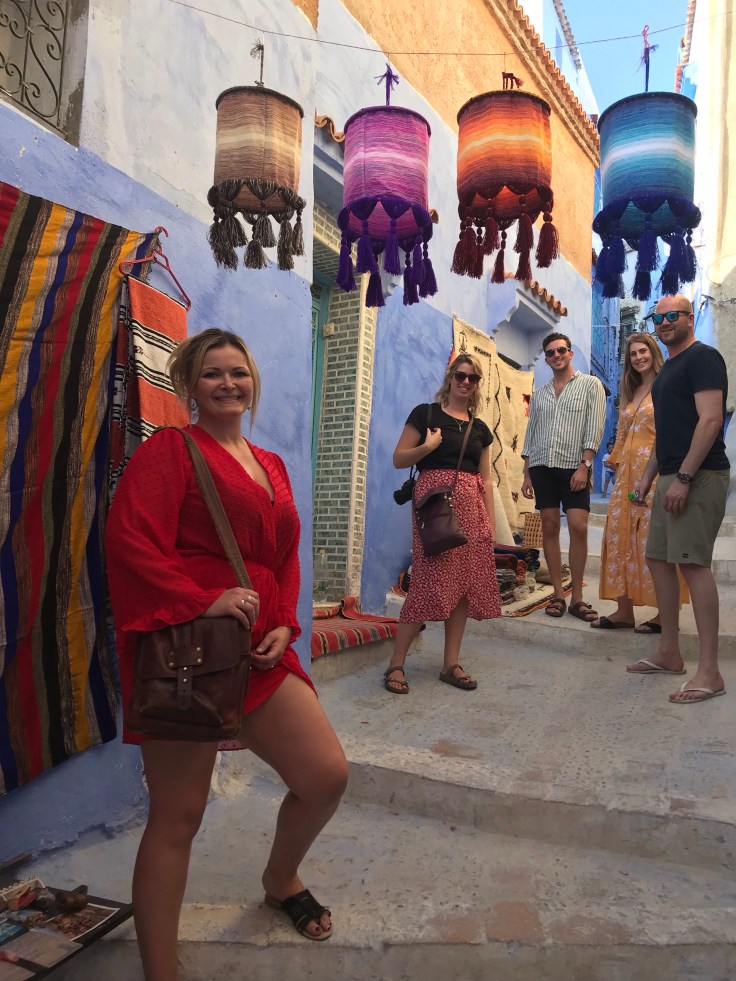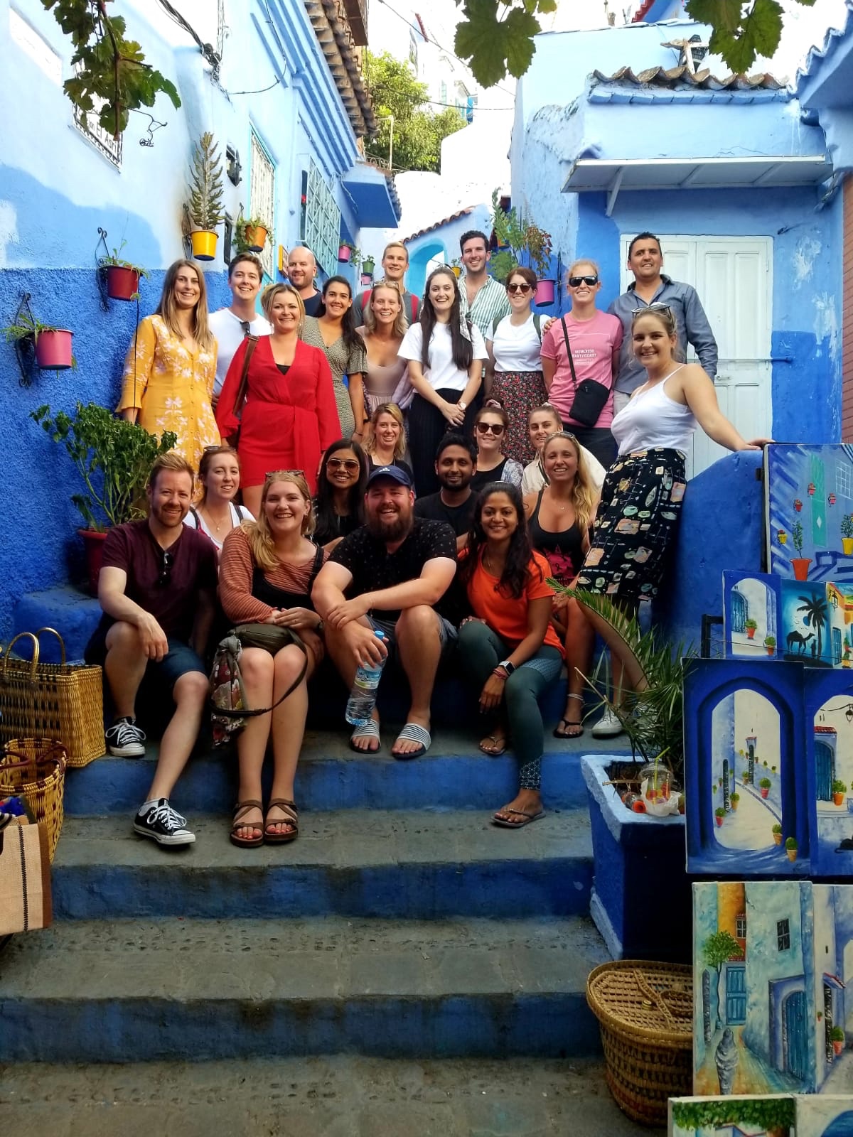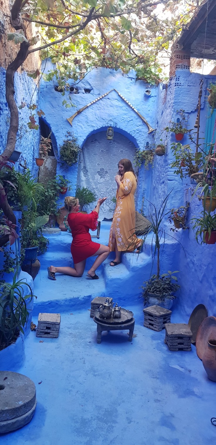 “Yallah”, let’s go!! That’s now how Abdul herds us back on the bus, don’t mind being herded though when it comes with a smile and a pat on the back as we get on the bus like his little herd of stray cats. And now, we’re bound for Chefchaouen, the blue city and source of a zillion Instagram snaps. Even has its very own Instagram alley. Literally a spot designated for the best pics for Instagram. For a city so famous, it’s name is kinda hard to say. To me it’s like Chef-shh-ow-en, but that’s in my Aussie bogan, when Abdul says the name is sounds so much more pretty! With a four hour trip ahead of us, it’s lucky Morocco is so damn pretty, and that everyone was smart enough to download from Netflix for this leg of the trip. Of course, Abdul being an awesome guide and passionate about his country downloaded his Google pages about Morocco and the blue city, which I’ll just call it cos it’s real name is too hard to spell right every time. As we’re now well and truly in outback Morocco, we’re told that there’s 25 different types of scorpions in Morocco, nice to know considering we’re due to spend two nights in the desert shortly. But relief, there’s no Cobra’s in the desert, just in the mountains. FFS, we’re literally snaking our way through the mountains on the way to be blue city (like my pun? Snaking? I know, you’re not funny if you have to explain your jokes!) More animal facts, Morocco used to have Lions, until 1964 when us humans slaughtered so many there’s none left in the wild. Damn humans. There are plenty of Camels left in the wild though, although they are camels with only one hump so called a dromedary, the ones with two humps are in Saudi. Onto my favourite subject, food!! As we already know, they love their tagines and pastilla in Morocco, and they also love their couscous and cows feet. Yeah one of them I won’t be trying. They are also keen on tea with mint although Abdul warned against drinking the “water of life” from figs, apparently one glass will knock you out for days and you won’t remember a thing. Probs not something to tell a bus full of aussies but anyway. This was when Abdul left us all speechless by telling us that as per his Muslim beliefs, he has never tried beer, wine, cigarettes or hash. Dude is clean as a whistle. I wonder if he knows about gin?? Onto more facts, cos this nerd certainly hasn’t had enough! The national sport of course is football, well, soccer if we’re talking Aussie. Second most popular, marathon running. Did not expect that! Done with the talking, we were left to enjoy the countryside and/or do our own marathons, the Netflix variety. Taking some time to look out the window rather than binge, Morocco is certainly beautiful, a countryside of donkeys, goats and olive trees but in all honesty, some parts look quite poor and run down. There is quite a lot of rubbish on the streets in some towns we pass through. But people have a simple life out here, they live off and work the land. They don’t have to worry about careers and those things we rate as first world problems. The shrink wannabe in me wonders if they are happier, I’m sure there’s a study that says so.