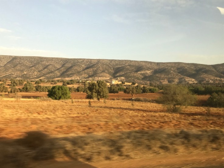 BOTB for an upcoming 6 hours of bus time in the day, we were lucky enough to at least see the sunrise while we questioned why we weren’t smart enough to download all the Netflix shows the night before. Abdul of course provided us with some entertainment with aussie dude Liam renamed Ali Baba on account of his epic beard, and the James Spader look alike Josh renames Mohammed, none of us were really sure why on that one. Abdul also introduced some Berber/Arabic words, like Shukran, meaning thank you. For some reason it sounded like the word chocolate to me, guess you had to be there. After such a lush beach backdrop it was onto the Morocco I expected, desert for miles, but pretty desert with trees and hills, or maybe it was just countryside?? It definitely felt like a step back in time either way, people making their way around with horse and cart, possibly they were donkies, they wizzed by so fast I’m not completely sure.