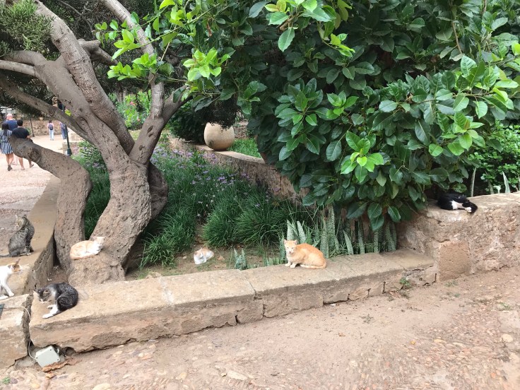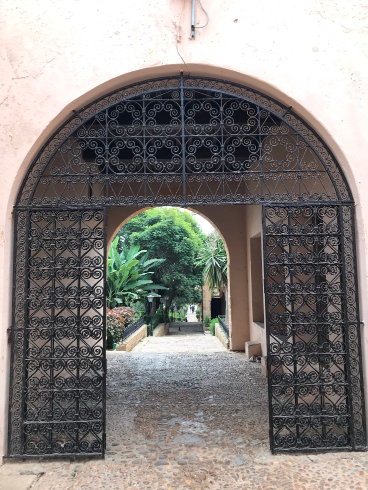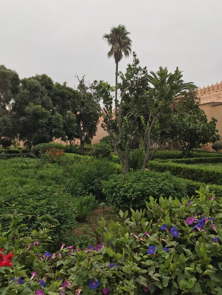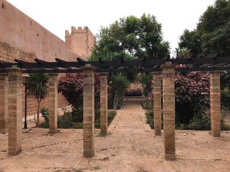 Turns out that in a Kasbah all roads lead to the same place and we managed to find Abdul. Or he managed to find us, same same. Yusuf relieved our stress heads with a story of why cats are his best friends and have his phone number. Long story and the adrenalin was still pumping so don’t remember it all, just the punchline. Cats found a massive treasure in a house once, so now everyone loves cats. Explains why there’s a zillion of them everywhere you look. Wandering around and taking in the pretty, we emerged into a Kasbah oasis. A beautiful lush green garden surrounded by the pink walls of the Kasbah, awww, Rabat you’re so pretty!! I take back the quip about you being a warren.