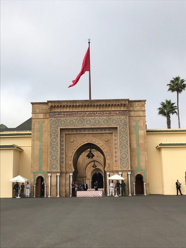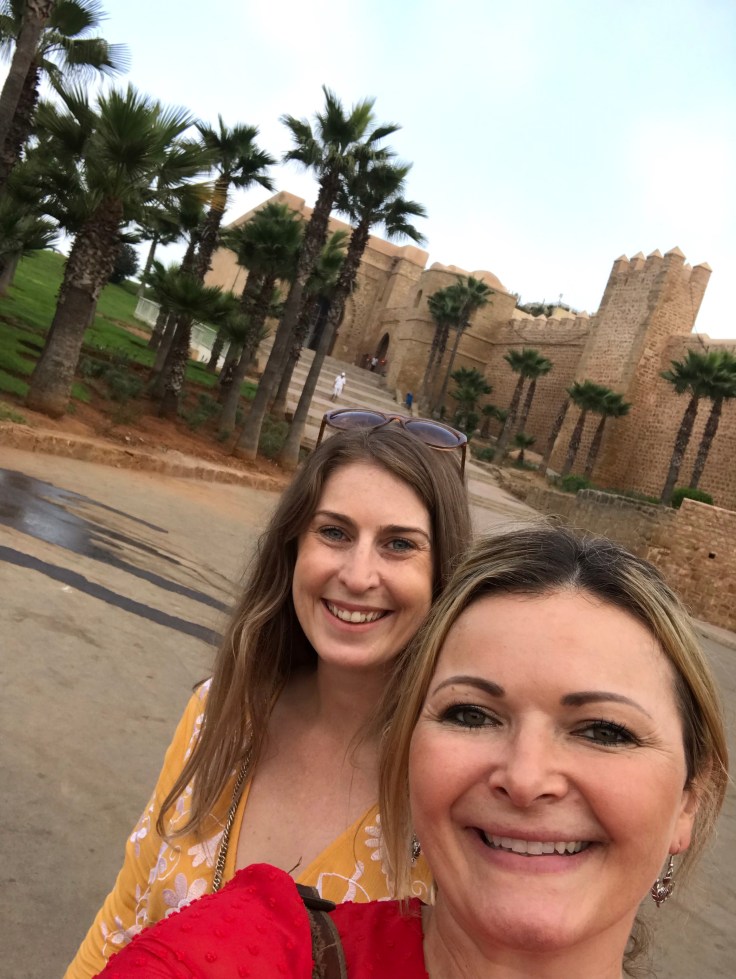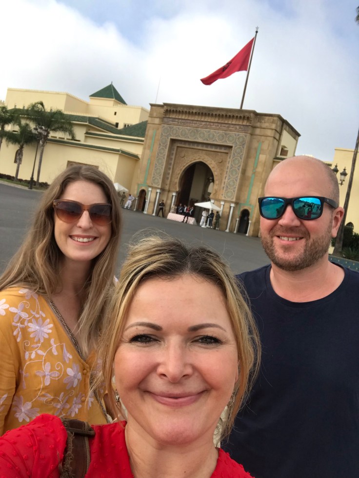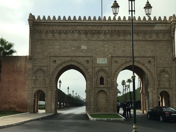 Never been so relieved to be BOTB and thankful for Amy’s Dad joke as we passed by a gorgeous cemetery… How many dead people are in the cemetery? All of them!!! Haha, my kind of humour. Miss my Dad!! Heading further into Rabat, we’re told it’s the city of green. All the roofs have green tiles which is pretty but have to admit, I like the look of Marrakech better. Abdul also explains the colours of the Moroccan flag, green is the colour of the Arab, red the colour of the Berber and white means peace. Ahh, also get the colours of the cities now too. And the star on the flag has 5 points to represent the 5 pillars of Islam. May have mentioned that before but so many things in my head I’m not sure. Next stop is the Palace of the King, an alive one this time. Apparently the dude even lives here so we’re not allowed in to get our tourist on, just allowed a token snap by the gates. But have to say, as the bus drove into said gate, wowsers. The gardens and site is immaculate. Understandable given 500 people work there as Abdul the Google tells us, and is set over 5 acres, apparently there’s a Necropolis of Roman ruins in there too but we’re not royal enough to see it.