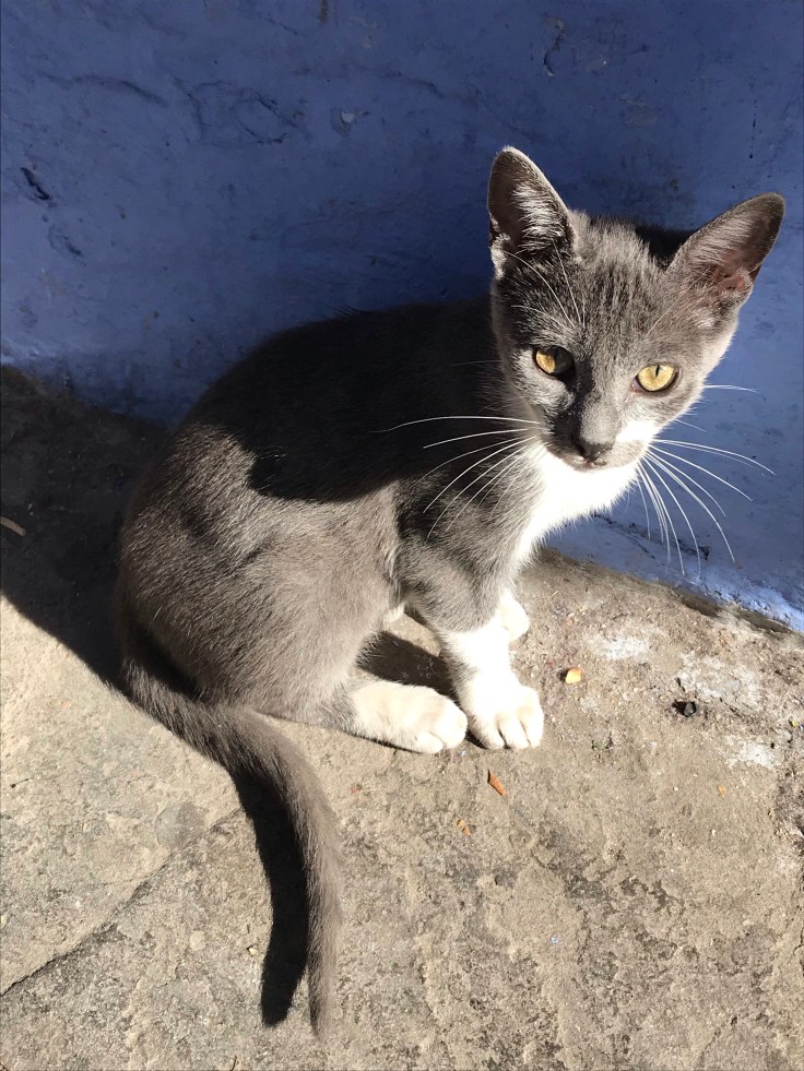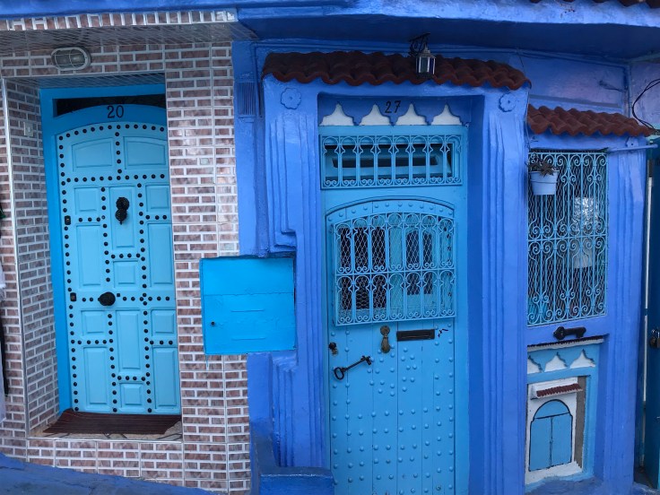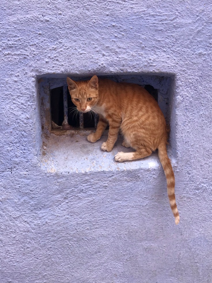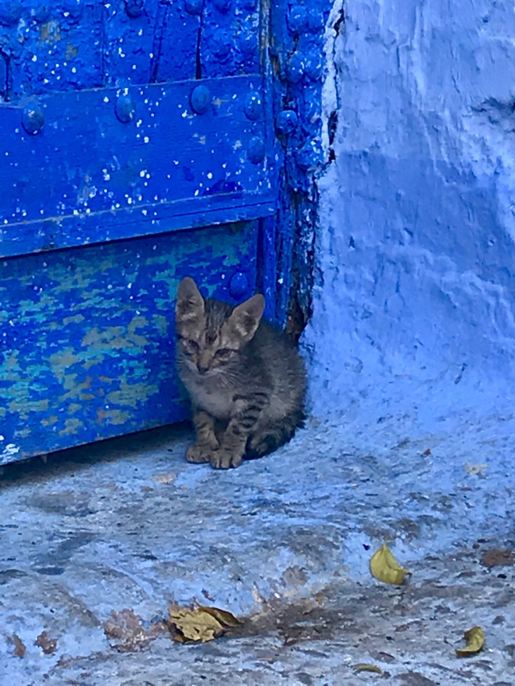 Geez it felt good to stretch more than just my arm to a glass of gin. Stretched and prettied up, we were once again heading for the blue city with Abdul giving us free time to roam and take selfies to our hearts content. While the day before I had planned to trek to the Spanish Church, I decided that instead I wanted to explore the city some more, yesterday’s brief visit didn’t feel nearly enough. While Kyles and Ads headed off with the others I was on my lonesome to explore. Well, you’re never really alone here, there’s usually at least 5 cats within arms reach to keep you company! And anyway, I’m not someone that can be around people 24/7, I need alone time and space to think. Not that I got much deep thinking done beyond “Aww what a cute little kitty” and “wow, that’s blue!”. Chefchouen certainly is one of the most prettiest cities I’ve ever gotten lost in, fancy blue doors, ornate knockers, some real some fake, and floor to ceiling blue walls that look more like they’d been carved out of stone than built. And did I mention the kitties?? I was in cat heaven, or maybe it was an insight into my future, alone and surrounded by cats?? Eeek, tried not to think a out that one too much!!