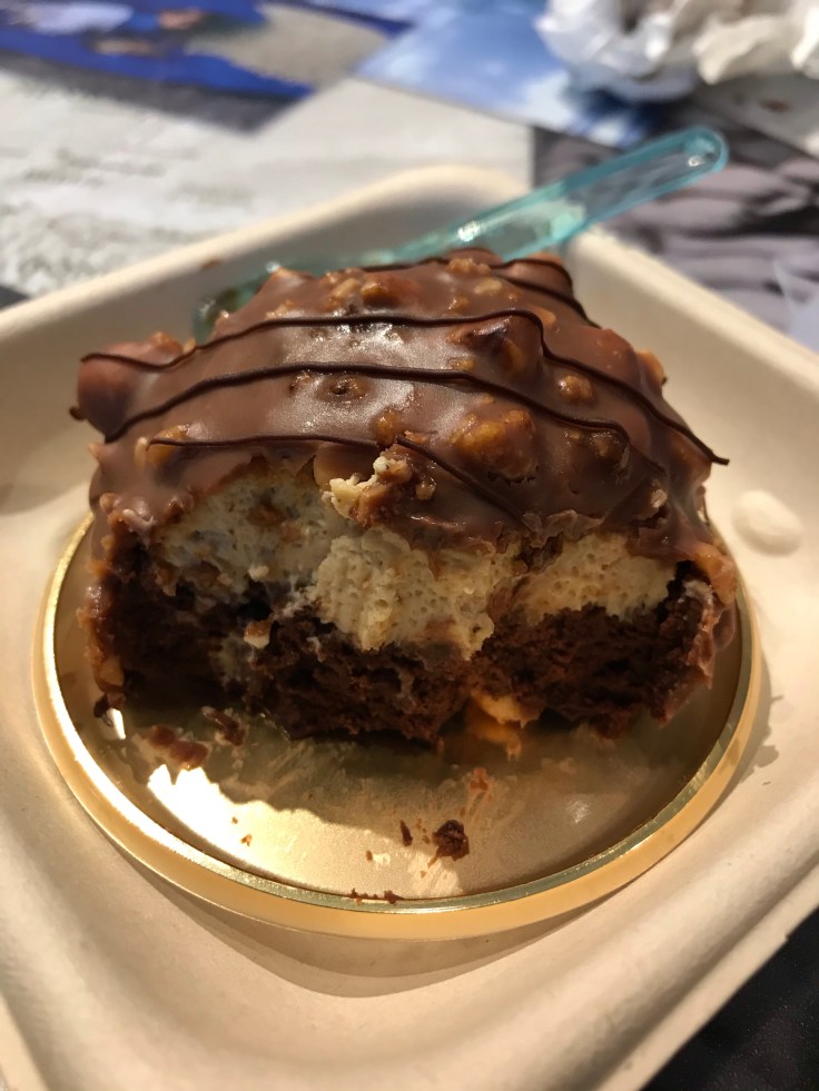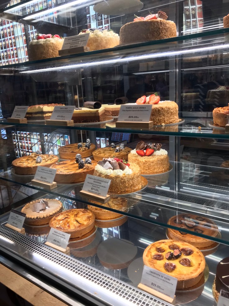 Feeling like we deserved a treat for all our hard work being tourists, we wandered into the dessert section of Eat Italy. Imagine getting all the yummiest desserts in one place and then having to choose only one! Ok, could have had more than one but we’re not that piggy, today. While there was build your own cannoli, gelato and all kids of cakes and tarts, I settled on this little gem of yumminess… hazelnut moosey chocolate cake, tastes even better than it looked if possible!