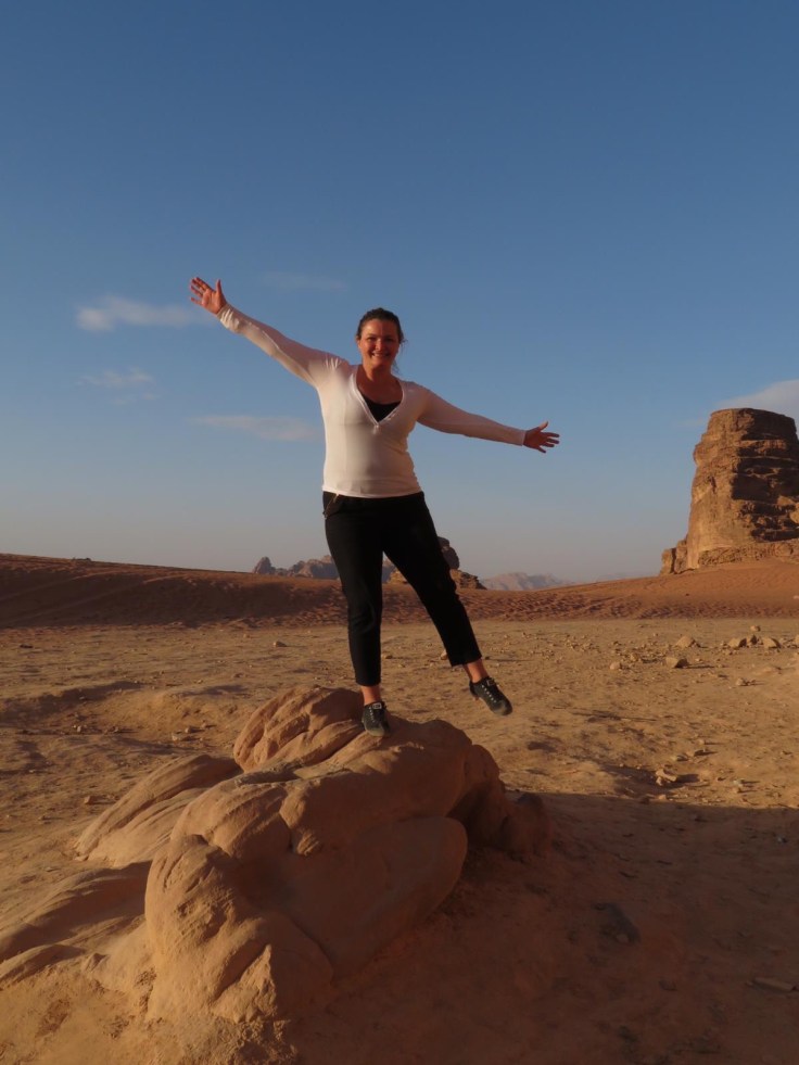 After hooning around for a while we stopped at a special rock with drawings on the stone that have been around for thousands of years, the drawings are directions to Petra, so Indiana Jones!! I was confused how they could last so long but the people who drew them were smarty pants and put them in a spot where the elements wouldn’t smash them and erode. Very smart!! Also some time for posed desert snaps, could only hold my arms up for a few seconds before the snot started running down my face!!!
