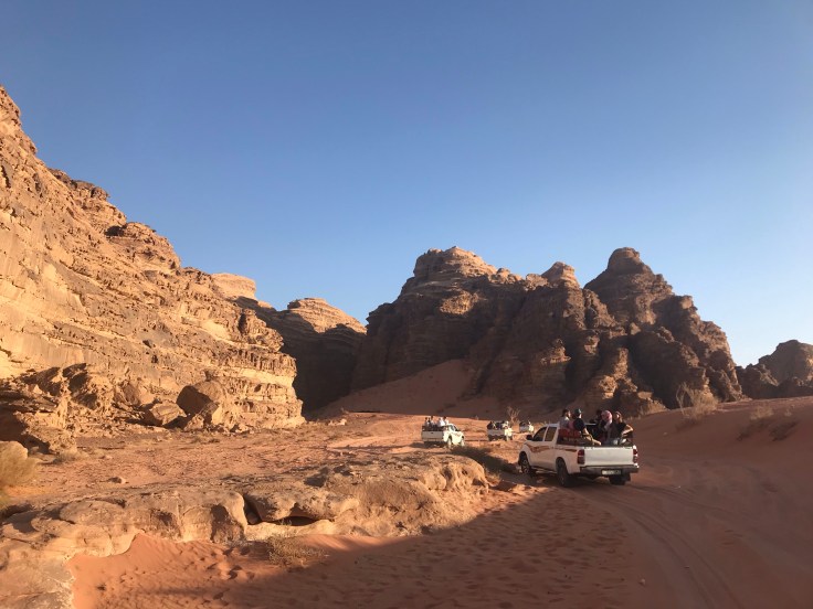 BITJ and more hooning before arriving at an obvious tourist spot cos there was a hell of a line up of cars. More drawings in stone but these ones were of people, Lawrence of Arabia and some other King. Did anyone else just think Lawrence of Arabia was just a movie?? Didn’t realize the dude was real, must watch that movie. This spot was super fun and pretty, and even though I had zero energy I followed Liz, climbing some rocks for a gorgeous view, Wadi Rum is spectacular. A different kind of desert to the Sahara but they each hold their own!