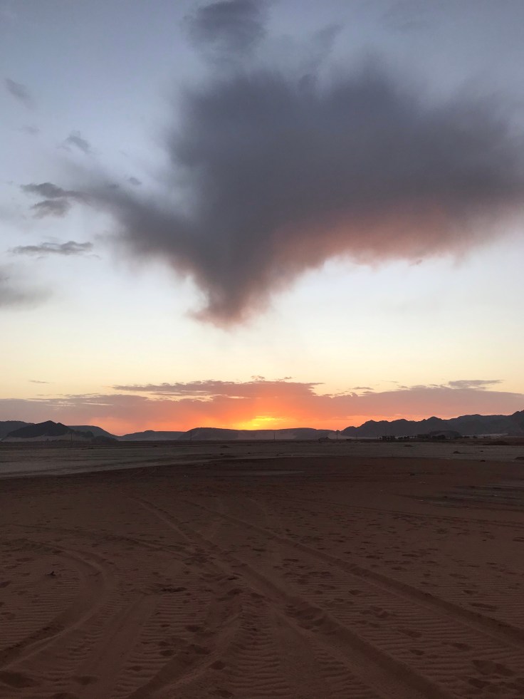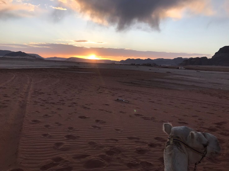 Up quite literally before the sun, we ventured just outside of camp to find our camels just patiently waiting. Camels are kinda always patient huh? Just kinda sit there chewing and spitting occasionally. Anyhoo, only a handful of us chose to get up a stupid o’clock for the ride, knowing how epic the one in Morocco was, I didn’t want to miss out. Ever so awkwardly up again, there’s no graceful way to do it on a camel, we headed I really don’t know where, forward outside the camp. About 15 minutes later, not far from camp, we disembarked to watch the sunrise and by gosh it was pretty. Sunrises in the desert are just something else.
